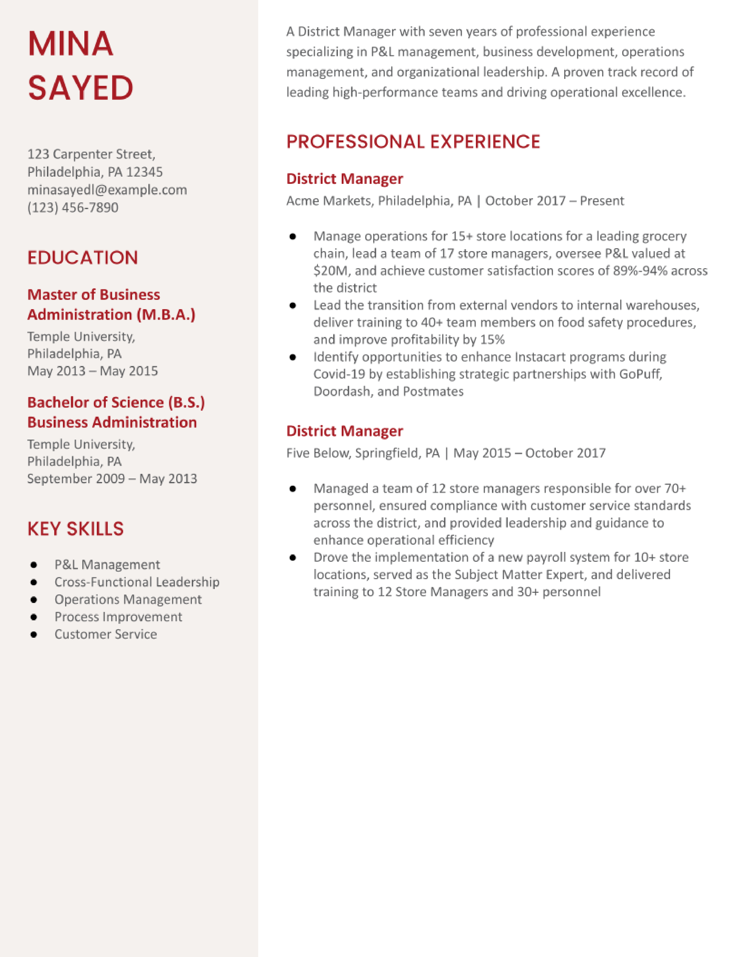 CVS District Manager Resume Examples | ResumeCat